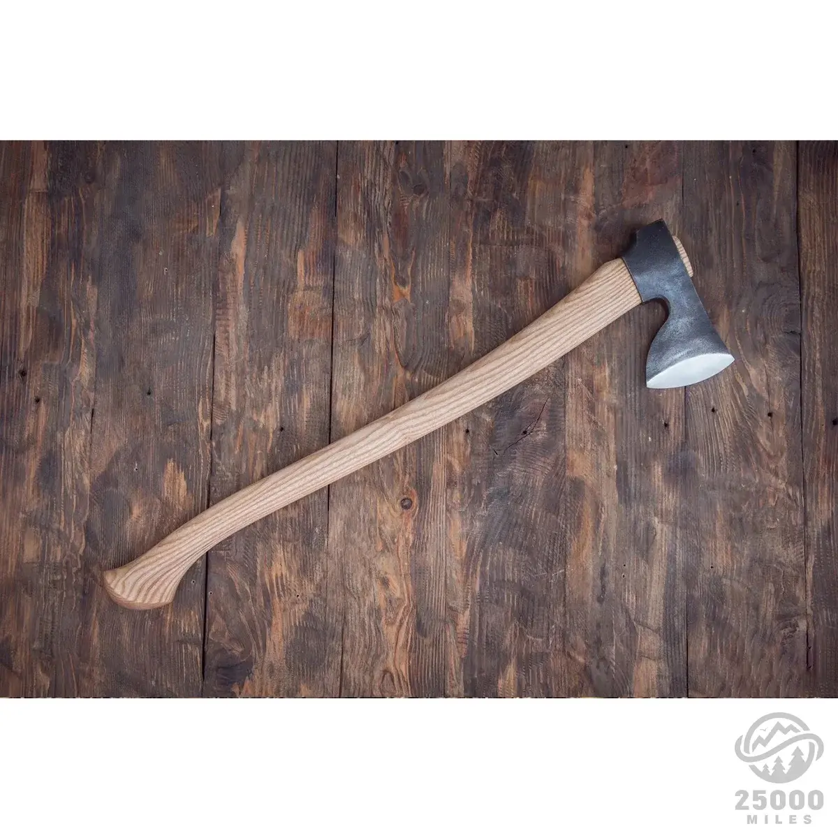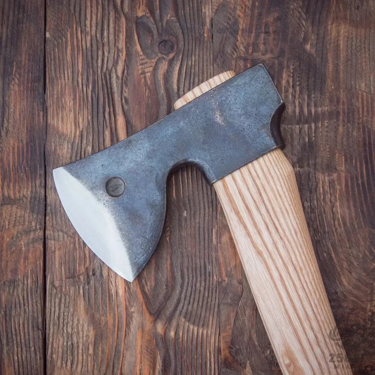 Hand-forged. With “banana” sharpening. All Anika axes are hand forged, which gives a slight variation in parameters, but the result is maximum durability and uniqueness of each axe.