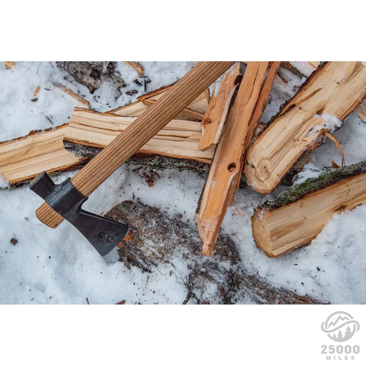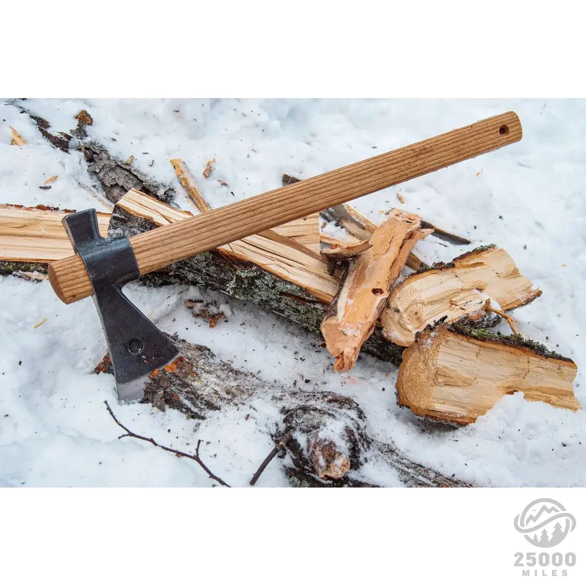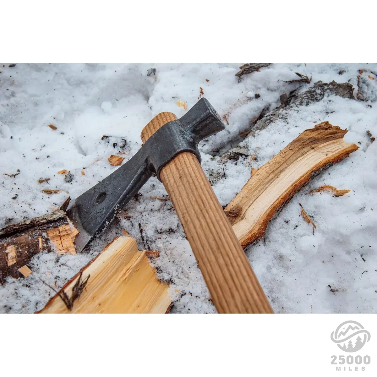 Key features: light, with a good wedge thickness and impact (hammer) butt. Ideal tool for travelling light and forest management.