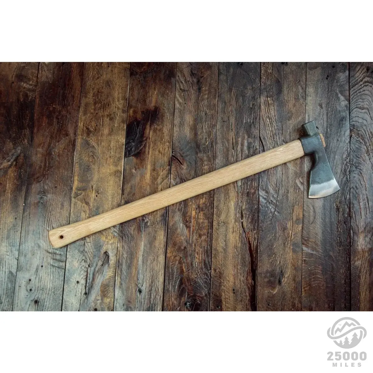 The long handle unlocks the potential of the head. Plunges well into wood with low weight, does not get stuck in wood due to balancing and banana sharpening.