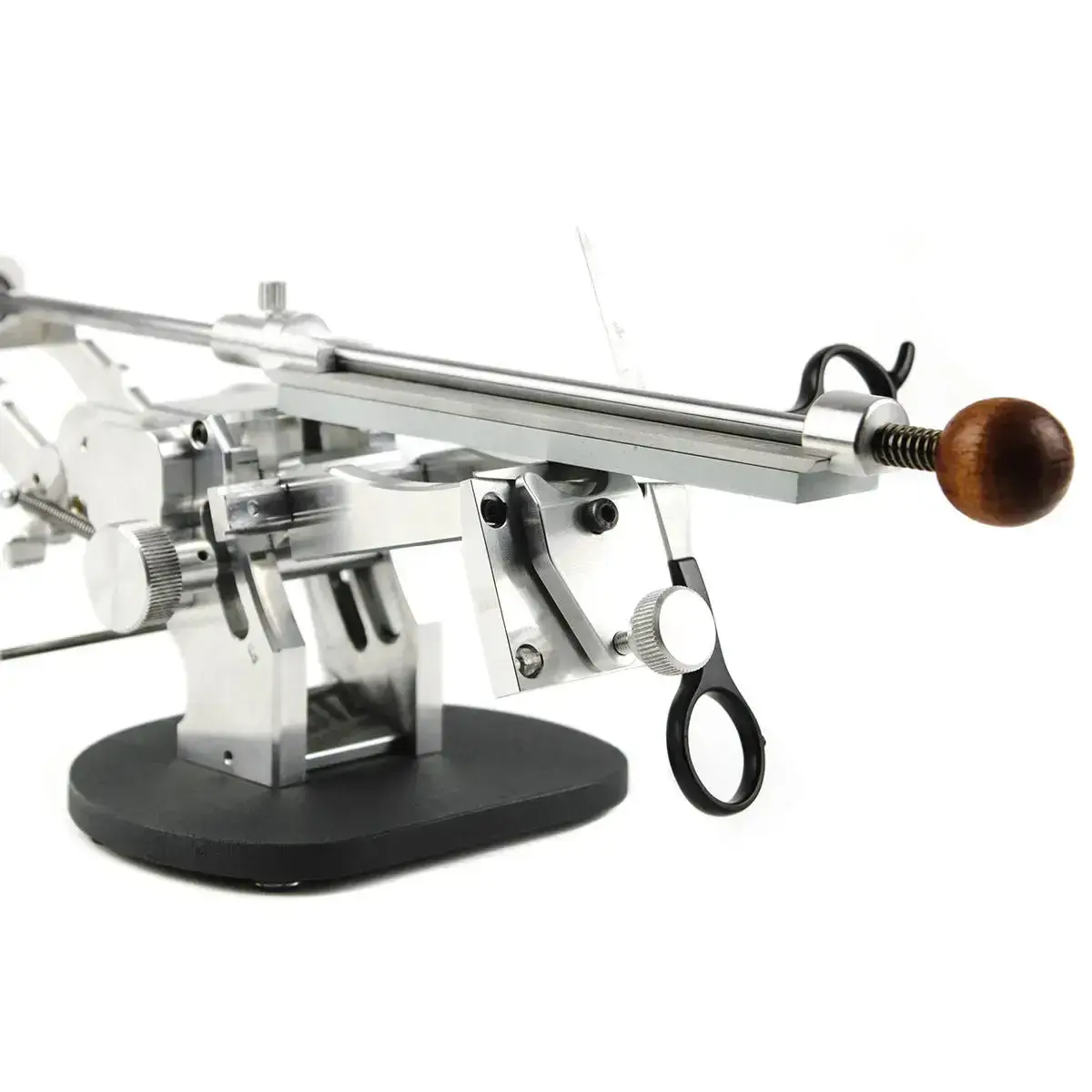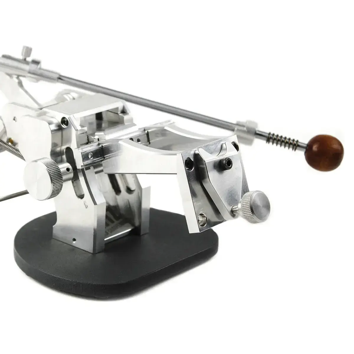 The TSPROF Blitz Scissors Clamp is made of 7075-T6 aviation aluminum. Its sturdy composition ensures durability and reliability, making it a long-lasting investment for your sharpening needs. The clamp consists of a single Y-shaped clip, a solid base, and brackets that secure everything in place. This design guarantees stability during sharpening sessions.