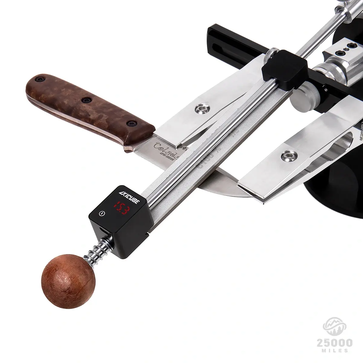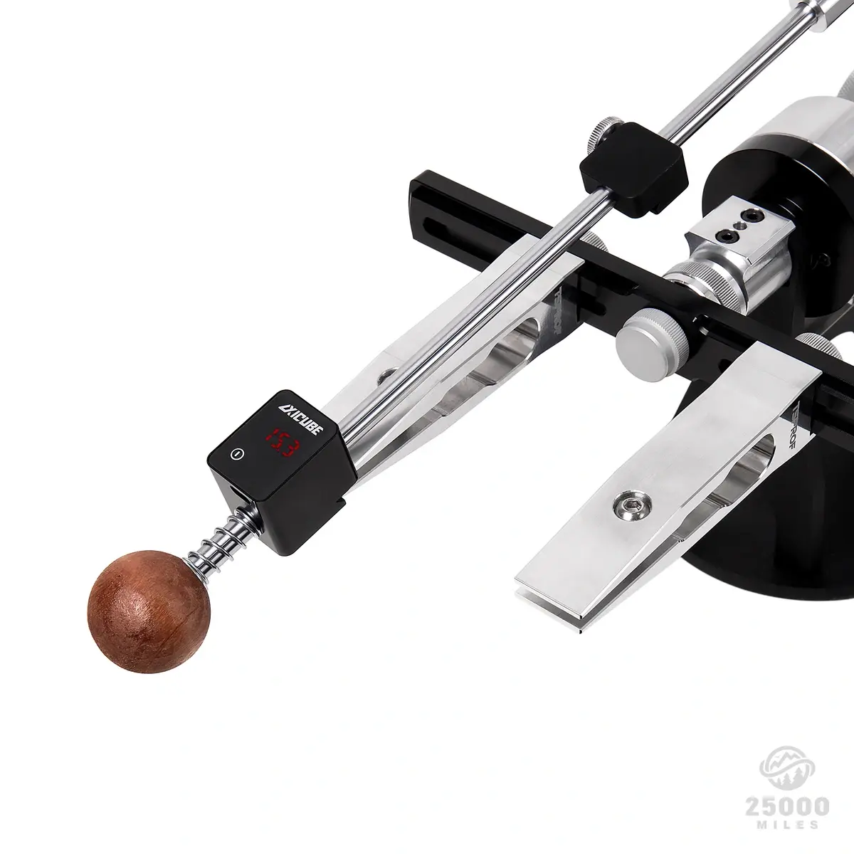 The K03 Pro is the best place to apply of the Axicube-I, an innovative and cutting-edge electronic angle finder. This unique piece of technology is seamlessly integrated into the holder’s adjustable stop, offering real-time monitoring of the blade’s sharpening angle. With a resilient exterior of robust aircraft aluminium, the Axicube-I is engineered to withstand both vibrations and fluctuations in temperature, promising enduring longevity.