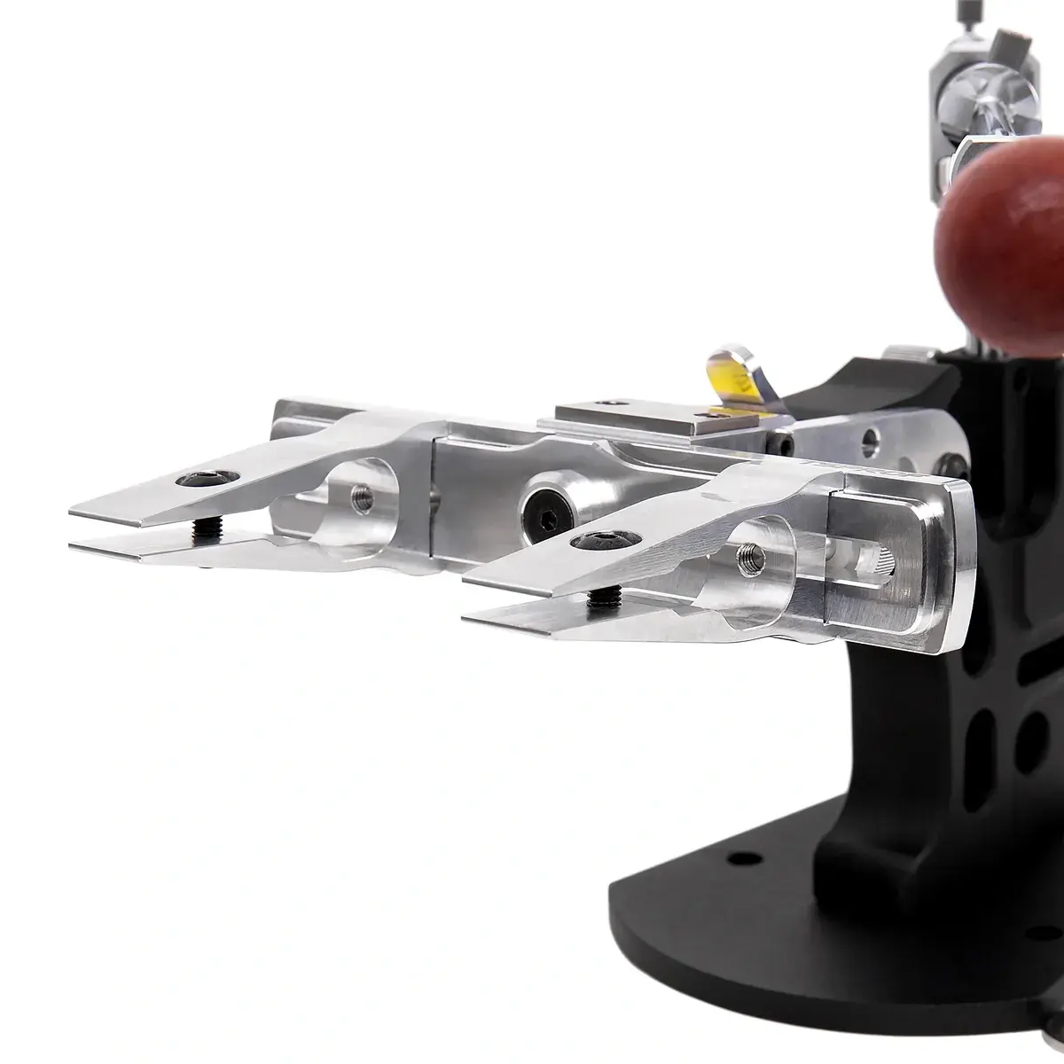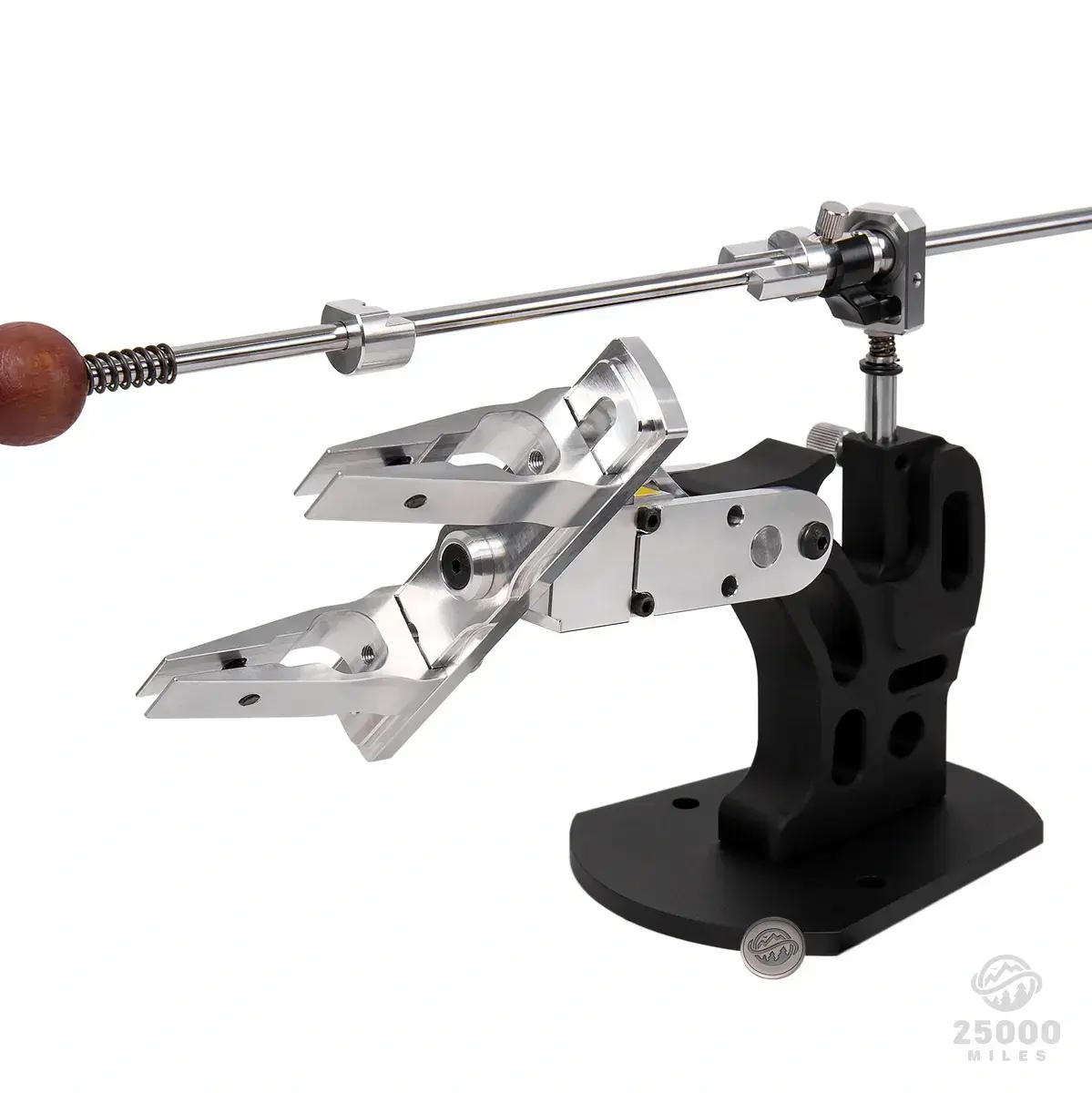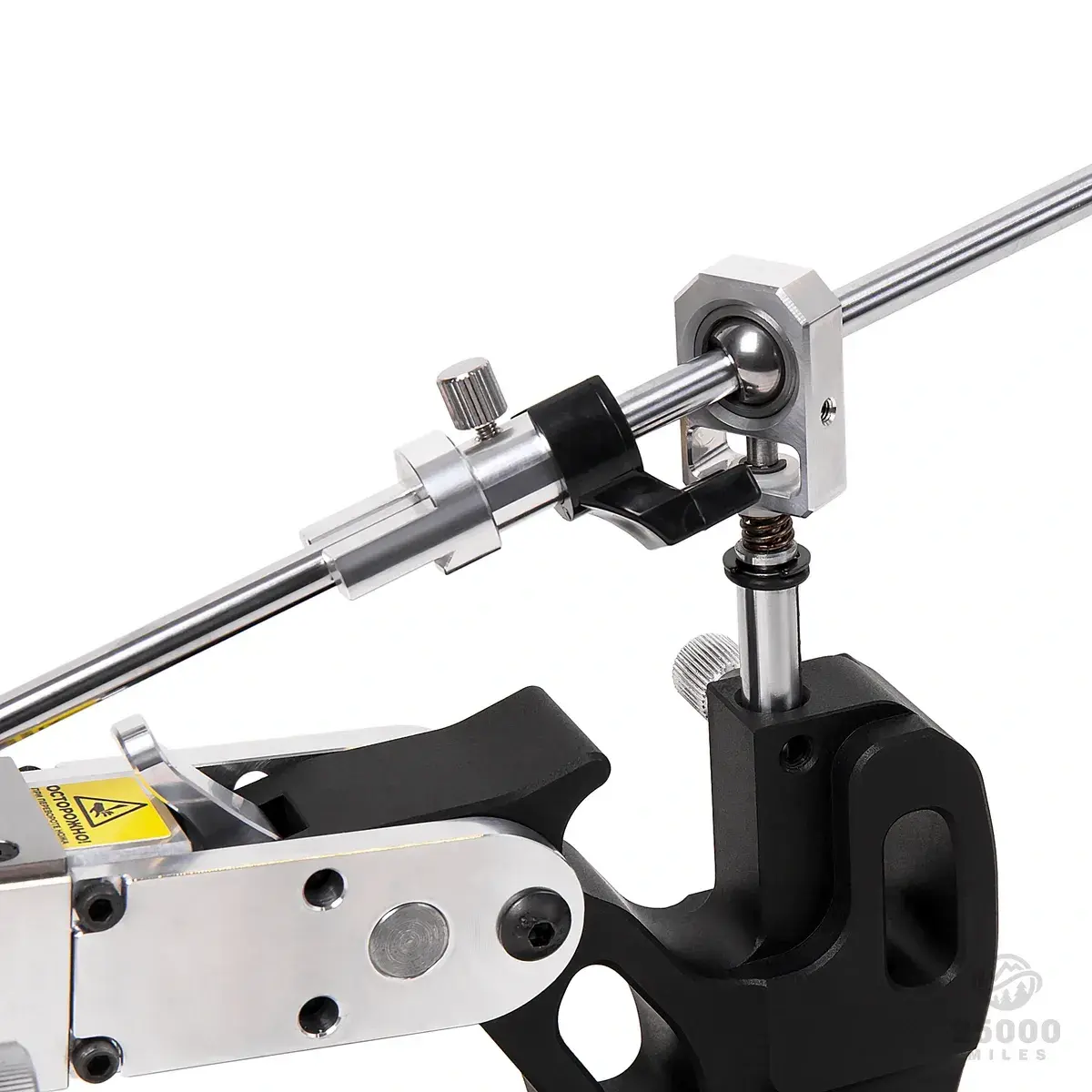 The angle adjustment axis of the TSPROF Pioneer smoothly moves within the frame, meticulously crafted from aviation-grade aluminum alloy. By utilizing the rubber ring, you can effortlessly track and compensate for any changes in the sharpening angle, particularly when working with abrasives of different thicknesses.